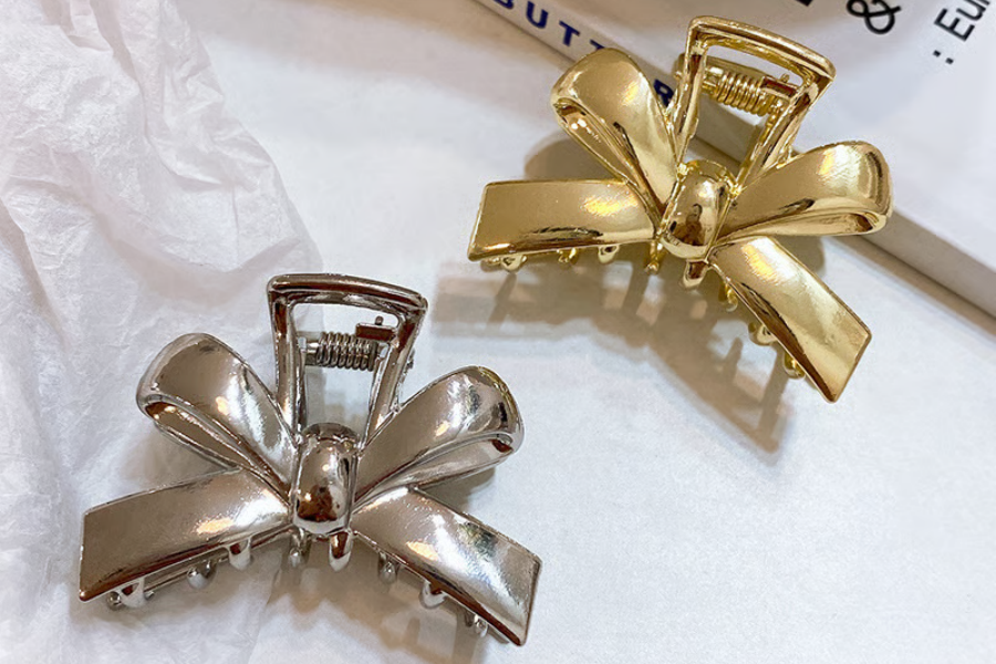 Crafted with attention to detail, metal bow hair clips showcase intricate designs that range from minimalist to ornate styles. The metallic finish, often in gold, silver, or rose gold tones, highlights the bow’s shape and adds a reflective quality that enhances visual appeal, making these clips timeless fashion statements.